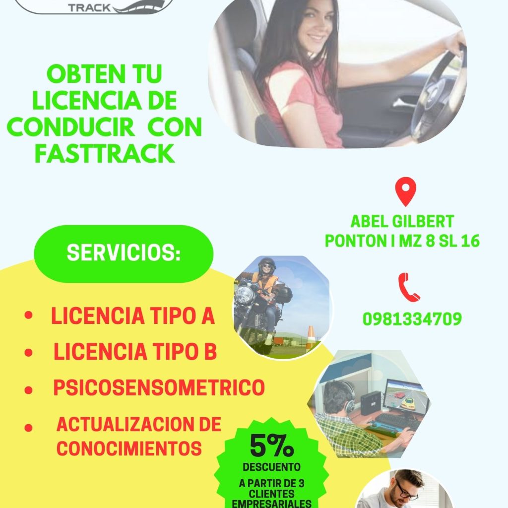 FastTrack, como Escuela de Conducción autorizada por la Agencia Nacional de Tránsito (ANT), capacita de forma teórica y práctica a todo ciudadano mayor de edad que desee obtener la licencia de conducir No Profesional tipo “A”